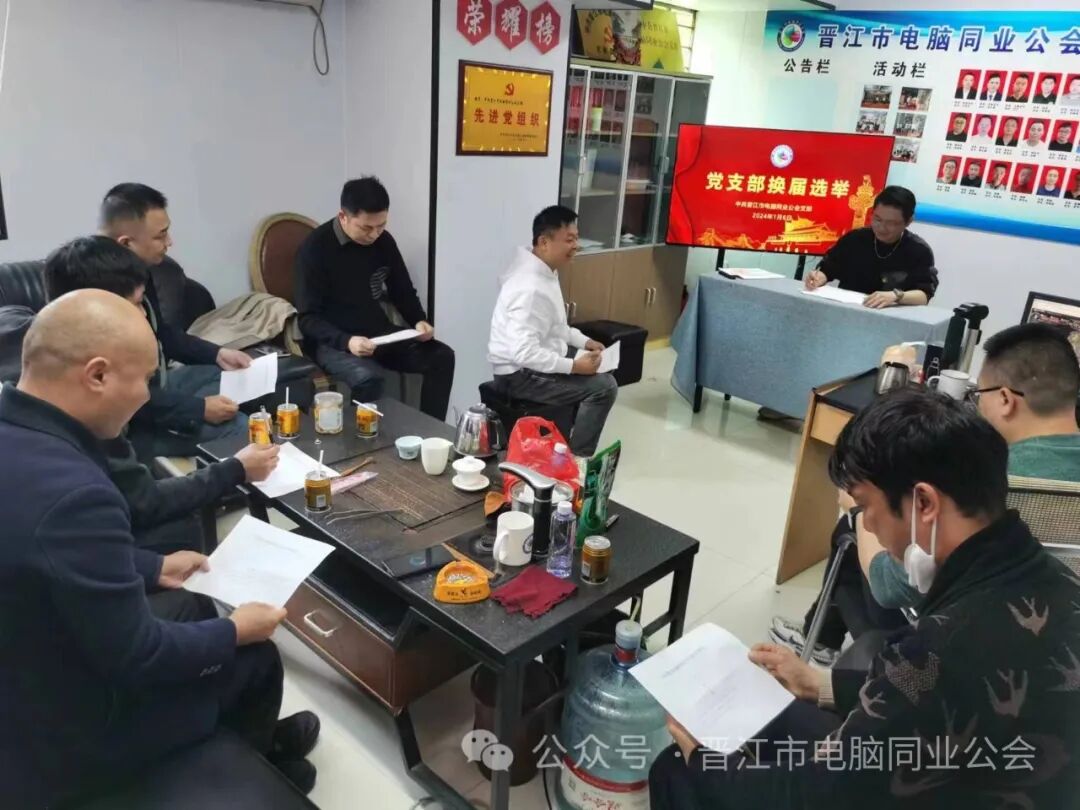 中共晋江市电脑同业公会支部任期届满,报系统党委批准,于2024年1月6日下午2点举行支部换届选举大会,选举产生新一届支部委员。