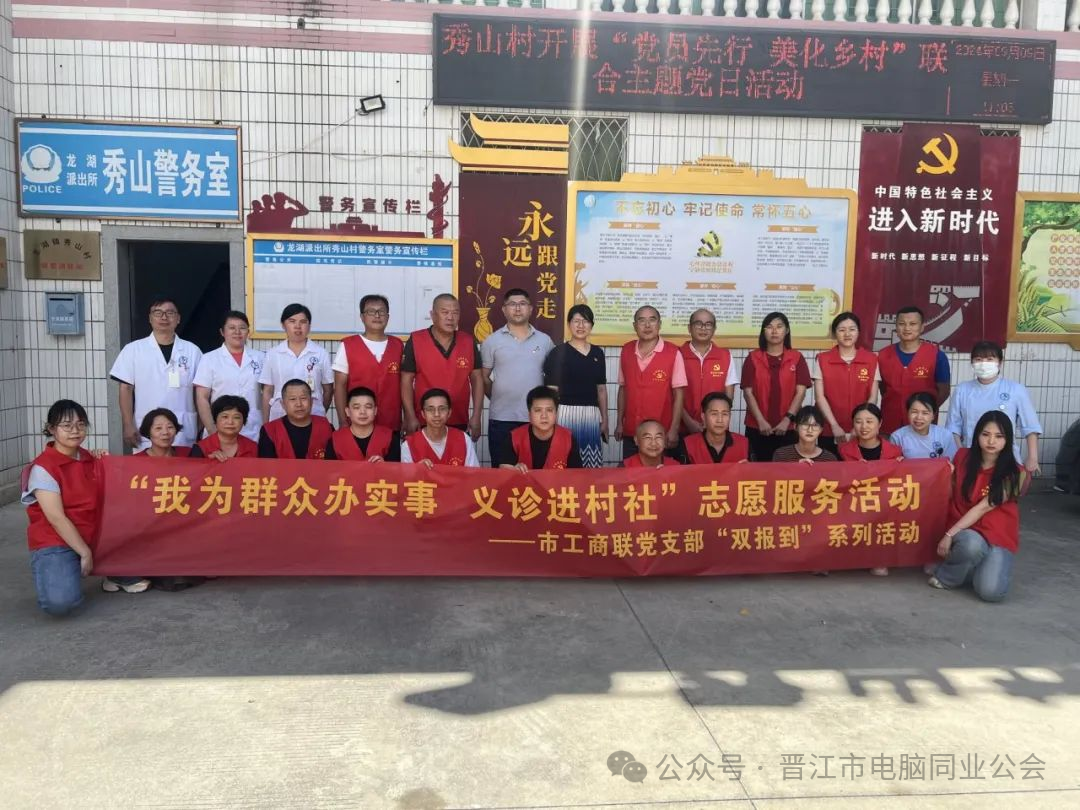 市医院晋南分院党总支为村名开展慢性病管理工作坊和家庭医生团队义诊服务;我会成员为村民开展电脑义诊服务。